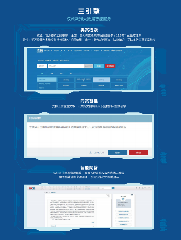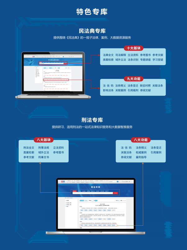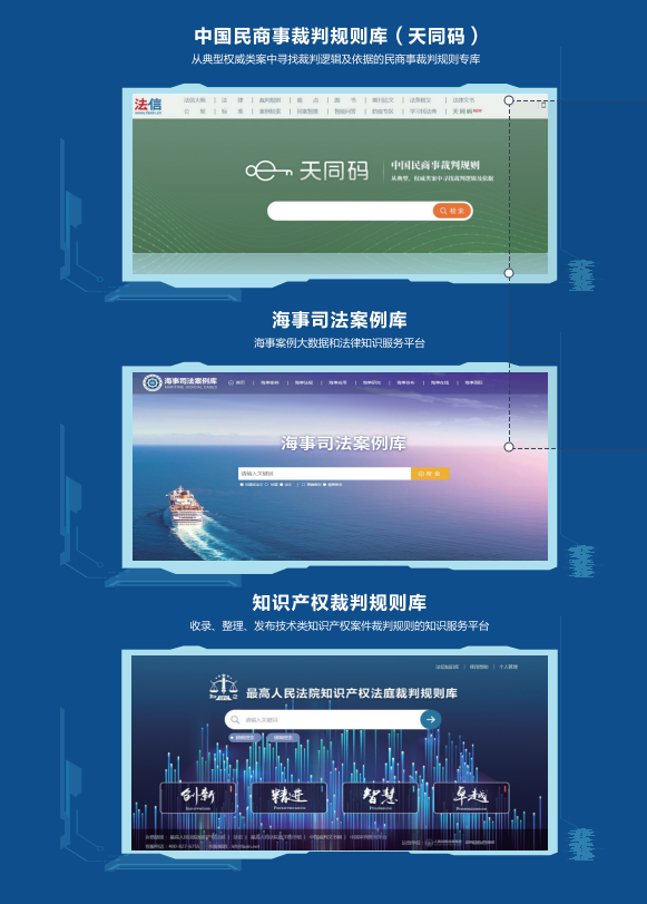 為響應(yīng)習(xí)近平總書記關(guān)于全面加強知識產(chǎn)權(quán)保護工作的要求,承建最高人民法院首個專門針對知識產(chǎn)權(quán)審判領(lǐng)域的法律知識大數(shù)據(jù)平臺——“法信知識產(chǎn)權(quán)版”“知識產(chǎn)權(quán)法庭裁判規(guī)則庫(知己平臺)”等,同時建設(shè)運營《最高人民法院公報》數(shù)據(jù)庫、國內(nèi)首家少數(shù)民族語言文字法律專業(yè)數(shù)據(jù)庫——“中國審判法律應(yīng)用支持系統(tǒng)蒙文版”等。在公共法律服務(wù)方面先后建設(shè)并推出“東法智慧訴服系統(tǒng)”“東法基層法治管理服務(wù)系統(tǒng)”,通過知識服務(wù)為法治社會提供助力。