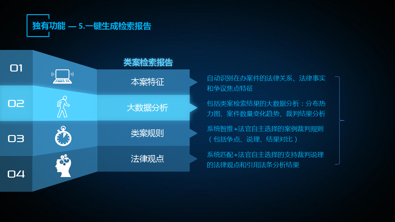 “法信2.0智推系統(tǒng)”的類案檢索報(bào)告由本案特征、類案大數(shù)據(jù)分析、類案規(guī)則、法律觀點(diǎn)四個(gè)部分組成。