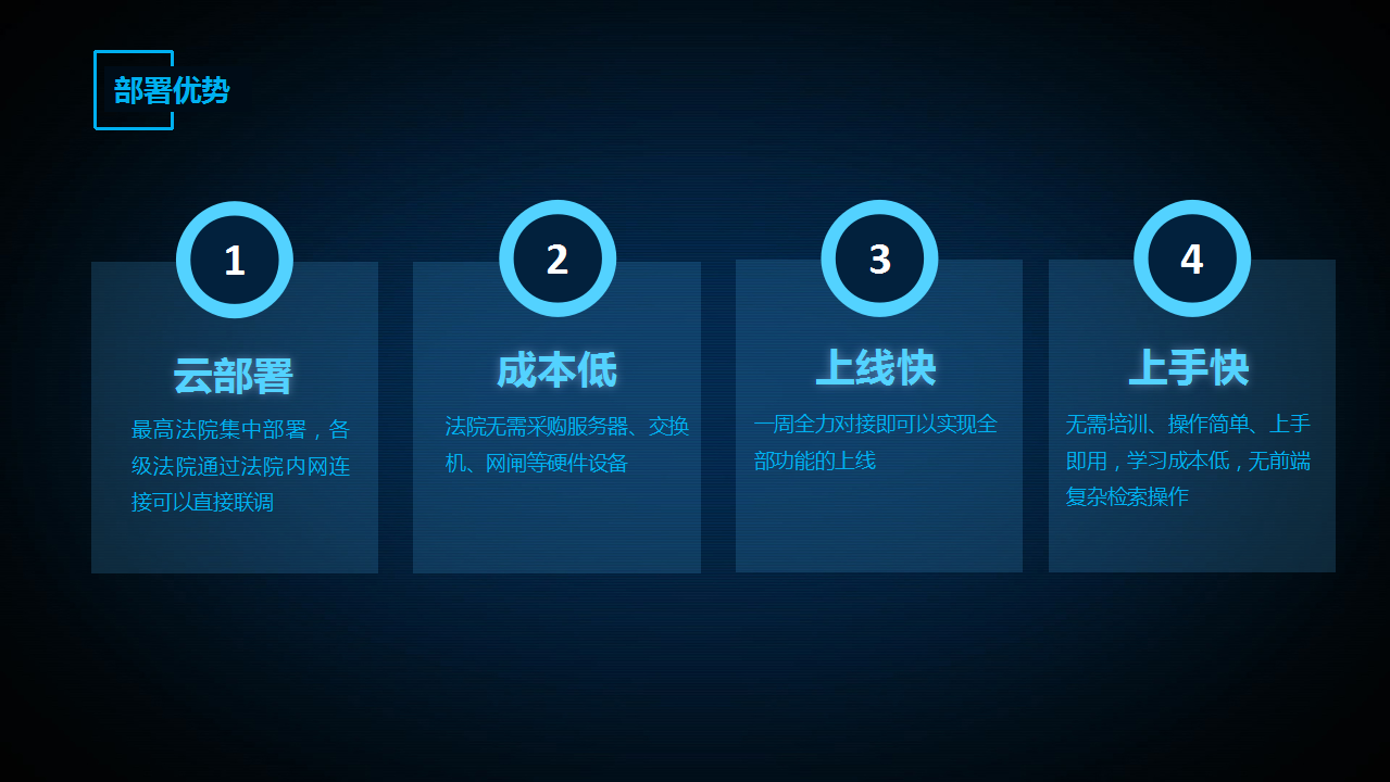 2.成本低——法院無需采購(gòu)服務(wù)器、交換機(jī)、網(wǎng)閘等硬件設(shè)備