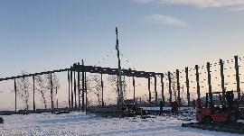 據(jù)了解,此項目是省內(nèi)的一個糧食倉儲基地,總計10萬平,承載量40萬噸。如此規(guī)模,從設(shè)計生產(chǎn)到施工安裝卻只有50天。時間緊,任務(wù)重!為此,龍慶鋼構(gòu)自與甲方確認(rèn)后,迅速反應(yīng),抽調(diào)施工隊伍400人,*短時間內(nèi)開赴施工地點。安裝地腳螺栓,安裝墻面檁條……零下20余度的冰雪環(huán)境中,龍慶施工隊伍不懼嚴(yán)寒,在如此惡劣的條件下嚴(yán)格按照制定計劃完成施工工作。