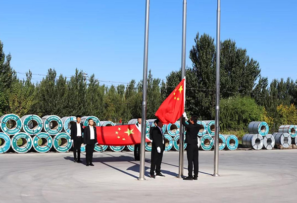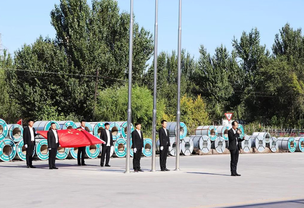 在薩大路辦公樓旗臺前,全體職工整齊列隊,莊嚴肅穆,當身姿矯健的護旗手邁著整齊的步伐,護送著國旗來到旗桿下。隨著一聲號令,在雄壯的國歌聲中,鮮艷的五星紅旗冉冉升起,現場全體人員昂首挺胸,用行注目禮的方式表達了黨的無限忠誠和*誠摯的祝福。升旗儀式結束后,總經辦王主任發(fā)表了講話,向奮戰(zhàn)在公司各個崗位上的干部職工致以節(jié)日的問候,邁入金秋十月,進入四季度,又到了全年目標攻堅奮戰(zhàn)之時,我們要再接再厲,勇于擔當,不懈怠,努力工作,擼起袖子加油干,全力以赴打好四季度**一仗,為公司**完成全年生產經營任務目標共同努力奮斗!